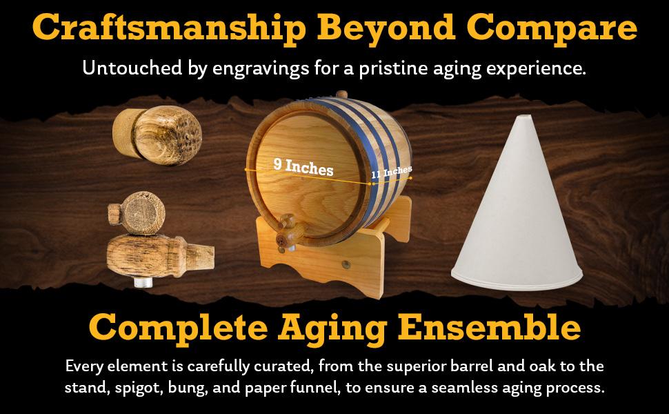 - Barrel stand, bung, spigot, paper funnel, instruction card